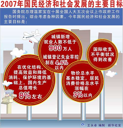 “物價(jià)總水平基本穩(wěn)定,居民消費(fèi)價(jià)格總水平漲幅在3%以內(nèi)!苯衲暾ぷ鲌(bào)告對(duì)物價(jià)調(diào)控目標(biāo)作了這樣的安排,3%的預(yù)定目標(biāo)與上年的年度目標(biāo)相同。 當(dāng)前的經(jīng)濟(jì)形勢(shì)是“高增長(zhǎng)、低通脹”,以2006年為例,經(jīng)濟(jì)增長(zhǎng)率為10.7%,而居民消費(fèi)價(jià)格漲幅僅為1.5%,物價(jià)總體溫和。 不過,中國(guó)工商銀行安徽分行行長(zhǎng)、全國(guó)人大代表趙鵬指出,政府工作報(bào)告在介紹完經(jīng)濟(jì)增長(zhǎng)連續(xù)四年達(dá)到或略高于10%之后,接下來就說“沒有出現(xiàn)明顯通貨膨脹”,說明在經(jīng)濟(jì)高增長(zhǎng)的背景下,政府對(duì)通貨膨脹問題高度關(guān)注。 西南財(cái)經(jīng)大學(xué)教授、全國(guó)人大代表秦池江認(rèn)為,2006年居民消費(fèi)價(jià)格總水平上漲1.5%雖然不高,但這并不意味著當(dāng)前通貨膨脹壓力很小,必須有所防范。今年設(shè)定物價(jià)3%的目標(biāo),其面臨的形勢(shì)也是這樣。 當(dāng)前,銀行體系流動(dòng)性過剩給整個(gè)物價(jià)形勢(shì)帶來不小壓力。北京大學(xué)國(guó)民經(jīng)濟(jì)核算研究中心蔡志洲研究員表示,由于國(guó)際收支不平衡造成央行不斷放出基礎(chǔ)貨幣,貨幣供給增加的壓力正在加大。貨幣供給超過實(shí)際需求,就容易造成通貨膨脹壓力。 而資源性產(chǎn)品價(jià)格改革,也將增加物價(jià)上行壓力。記者從有關(guān)部門了解到,為更好地采用經(jīng)濟(jì)手段促進(jìn)節(jié)能降耗,為使資源價(jià)格更好地反映資源稀缺度,資源性產(chǎn)品價(jià)格將總體上行,會(huì)帶動(dòng)居民消費(fèi)價(jià)格一定程度的上漲。 此外,去年底部分地區(qū)糧食價(jià)格的上漲,對(duì)今年居民消費(fèi)價(jià)格的影響也將逐漸釋放和表現(xiàn)出來。部分公共產(chǎn)品和服務(wù)價(jià)格的調(diào)整也會(huì)帶動(dòng)居民消費(fèi)價(jià)格上行。 綜合上述原因,央行等部門也認(rèn)為,當(dāng)前物價(jià)上行風(fēng)險(xiǎn)要大于下行風(fēng)險(xiǎn)。雖有壓力,但今后并不會(huì)出現(xiàn)明顯的通脹。 記者從有關(guān)部門了解到,當(dāng)前社會(huì)供求關(guān)系總體平衡,供略大于求,這總體上制約了明顯通貨膨脹的出現(xiàn)。更重要的是,經(jīng)過了這么多年的宏觀調(diào)控實(shí)踐,政府對(duì)市場(chǎng)規(guī)律的認(rèn)識(shí)不斷深化,調(diào)控藝術(shù)和手段不斷完善,完全有能力應(yīng)對(duì)通貨膨脹的壓力。 “3%是物價(jià)溫和上漲的上限!辈讨局扪芯繂T指出,這個(gè)指標(biāo)是切合實(shí)際、留有余地的,政府通過回收流動(dòng)性、穩(wěn)定糧食價(jià)格、把握資源性產(chǎn)品和公共服務(wù)價(jià)格調(diào)整節(jié)奏等方式,完全能夠?qū)崿F(xiàn)這個(gè)物價(jià)調(diào)控目標(biāo)。