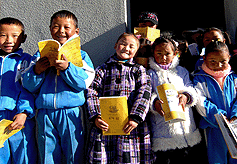 3月5日,西藏堆龍德慶縣桑木鄉(xiāng)桑木村教學(xué)點(diǎn)的孩子們拿到免費(fèi)的新課本、作業(yè)本。