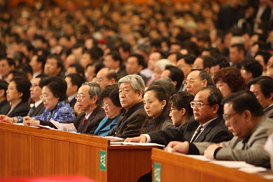 3月3日,中國(guó)人民政治協(xié)商會(huì)議第十一屆全國(guó)委員會(huì)第一次會(huì)議在北京人民大會(huì)堂開幕。這是委員們?cè)谡J(rèn)真聽會(huì)。新華社記者