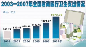 “2007年,中央財政支出29557.49億元,增加6064.64億元,完成預(yù)算的110%。其中,超預(yù)算最多的項目是醫(yī)療衛(wèi)生支出,其支出規(guī)模達(dá)664.31億元,增長296.8%,完成預(yù)算的212.4%!弊蛱欤3月6日)公布的《關(guān)于2007年中央和地方預(yù)算執(zhí)行情況與2008年中央和地方預(yù)算草案的報告》透露了上述信息。