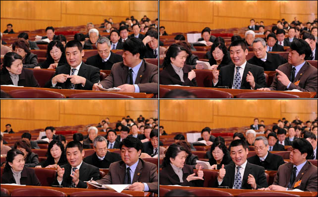 咸樹立是長春市聾啞學(xué)校的老師,已經(jīng)連續(xù)兩屆為來自全國政協(xié)社會福利和社會保障界的于兵委員提供手語翻譯服務(wù)。在今年的政協(xié)會議上,咸樹立又新增了一位聾啞人服務(wù)對象——新任全國政協(xié)委員高曉笛。在全國政協(xié)十一屆一次會議的會場上,兩位委員在手語翻譯的幫助下“傾聽”大會發(fā)言,以“流利”的手語、熱情洋溢的笑容和眼神,表達(dá)自己的想法和感受。