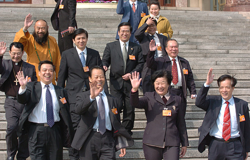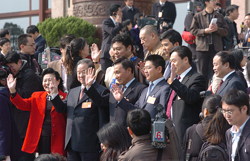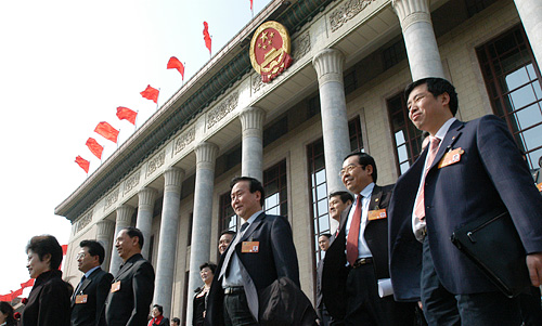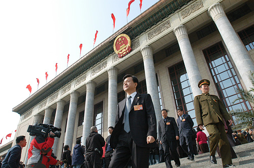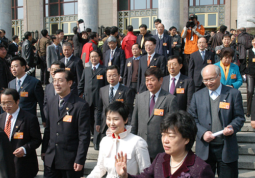 3月14日,中國人民政治協(xié)商會(huì)議第十一屆全國委員會(huì)第一次會(huì)議在北京人民大會(huì)堂舉行閉幕會(huì)。圖為會(huì)后委員們走出人民大會(huì)堂。