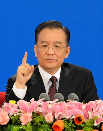 國務(wù)院總理溫家寶回答記者提問。 新華社記者 蘭紅光