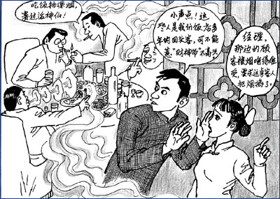 隨著人們對(duì)健康意識(shí)的普遍增強(qiáng),對(duì)餐廳“禁煙”的要求也愈加強(qiáng)烈,2008年國(guó)家提出了“無(wú)煙奧運(yùn)”的概念,規(guī)定相關(guān)的餐廳等場(chǎng)所要“禁煙”。但是一些餐廳首先考慮的是利潤(rùn),擔(dān)心餐廳控?zé)煏?huì)影響營(yíng)業(yè)額,也有些食客固守吃飯抽煙的習(xí)慣不想改掉,使“無(wú)煙餐廳”至今尚未全面“開(kāi)花結(jié)果”。看來(lái),“餐廳等場(chǎng)所禁煙”,除了有關(guān)部門(mén)檢查監(jiān)督外,某些煙民也應(yīng)轉(zhuǎn)變老習(xí)慣,養(yǎng)成文明行為才行。