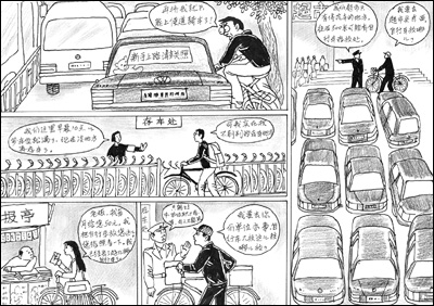 油價上漲,越來越多的市民選擇騎自行車出行,但停車難與道路擁擠卻給不少人帶來尷尬和煩惱。原因是多數(shù)商場、酒店或超市都未設(shè)自行車停車位,隨便找個地方放又經(jīng)常丟失;同時道路規(guī)劃設(shè)計也存在著重汽車卻輕自行車現(xiàn)象,自行車道經(jīng)常被機(jī)動車擠占。