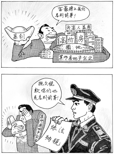 一方面大肆圈地、推高房價、牟取暴利,另一方面卻欠稅不繳,房地產(chǎn)企業(yè)成為欠稅大戶在全國各地并不鮮見,例如北京市地稅局日前依法公布了京城63家欠稅企業(yè)名單,其中房地產(chǎn)企業(yè)占一半以上。 用拖欠稅款的手段,以達到繼續(xù)牟取暴利目的,其中反映的應該不僅僅是房地產(chǎn)企業(yè)缺乏納稅意識的問題。在老百姓眼里富得“冒油”的房地產(chǎn)企業(yè),為何能成為欠稅大戶?相關稅務征管環(huán)節(jié)有無漏洞和責任?在依法處理這些欠稅大戶的同時,稅務征管工作是否也應有所加強。 |