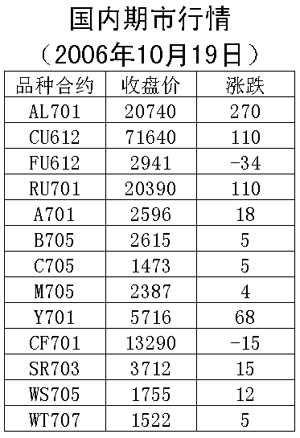 19日國(guó)內(nèi)期貨市場(chǎng)多數(shù)品種上漲,燃油、豆粕下跌。