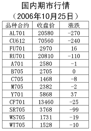 25日國內期貨市場除滬燃油上漲外,其他品種都以下跌報收。
