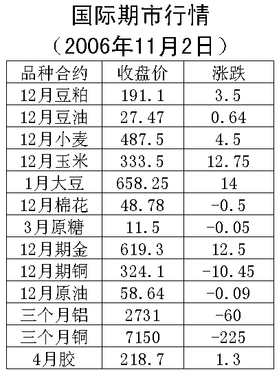 2日,國內(nèi)期貨市場銅、膠下跌,其余品種上漲。
