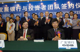 16日20時左右,廣東發(fā)展銀行與美國花旗銀行牽頭組織的國內外投資者團隊在廣州簽署了戰(zhàn)略投資與合作協(xié)議。花旗集團與IBM信貸、中國人壽、國家電網、中信信托、普華投資等國內外企業(yè)組成的投資者團隊出資242.67億元,認購重組后的廣發(fā)行85.5888%的股份。