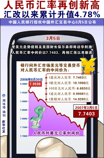 人民幣匯率創(chuàng)新高 匯改以來(lái)累計(jì)升值4.78%