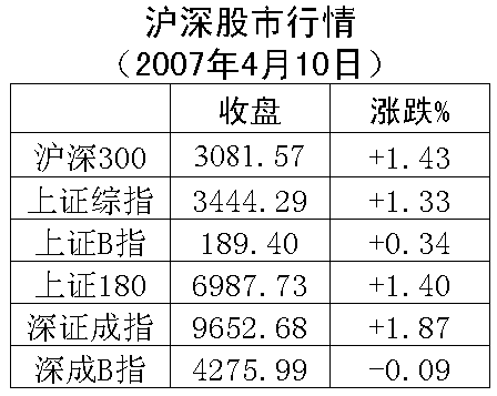 在上市公司業(yè)績和市場充裕資金的支持下,滬深股指10日再度雙雙創(chuàng)出新高。上證綜指站上3400點(diǎn)整數(shù)關(guān)口,與此同時兩市創(chuàng)出超過2300億元的新“天量”。