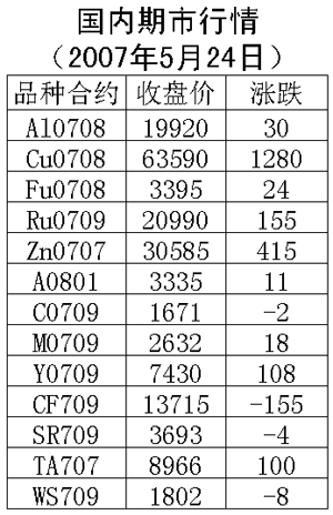 24日,國內(nèi)期貨市場金屬,能源價格上漲,農(nóng)產(chǎn)品價格下跌。