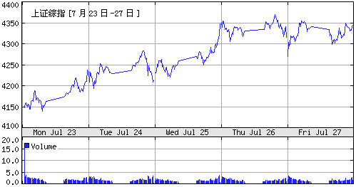 本周,國內股市強勢上揚,創(chuàng)出歷史新高。隨著兩只政策“靴子”落地,滬深股市可謂是氣勢如虹,雙雙刷新歷史高點紀錄,掀開了中國證券史上嶄新的一頁。 本周里,上證綜指、上證50、上證180、深證成指等均創(chuàng)出歷史新高。上證綜指報收于4345.36點,一周大漲7.08%,周K線已經連續(xù)三連陽;深證成指報收于14614.1點,周升幅也達到8.92%。股指創(chuàng)新高的同時,本周兩市的成交量比上周明顯放大,其中滬市周成交7007億元,深市周成交3779億元。兩市的日成交量達到了上周的1.9倍。 具體來看,周一,滬深股市繼續(xù)上周五的漲勢,兩市股指高開高走,穩(wěn)步上揚,上證綜指和深證成指分別收復4200點和14000點整數關口,同時,投資者A股開戶數7月份首次突破10萬戶。周二,兩市股指高位震蕩,周三,兩市股指再度發(fā)力上沖,上證綜指離歷史高點近一步之遙。周四,股指雖然只是小幅上漲,但上證綜指和深證成指均毫無懸念地順利突破歷史高點,雙雙創(chuàng)出4371.51和14703.17點的歷史新高,周五兩市則小幅調整。 來自滬深證券交易所的最新統(tǒng)計數據顯示,截至本周最后一個交易日,滬深兩市總市值為193322億元,較上周末增加7.98%。其中,滬市總市值為149476億元,較上周末增加7.17%;深市總市值為43846億元,較上周末增加10.83%。滬深股市總流通市值為65012億元,較上周末增加10.08%。其中,滬市流通市值為42950億元,較上周末增加9.67%;深市流通市值為22062.45億元,較上周末增加10.74%。 在宏觀經濟持續(xù)向好、上市公司中期業(yè)績大幅增長、流動性依然充裕這些牛市的基本因素未出現根本改變的前提下,困擾市場的利空因素基本明朗和新增資金不斷入場,是本周行情大幅上攻的主要誘因。在市場盤整期間新發(fā)和拆分的基金加速進場,質優(yōu)藍籌股成為其建倉的首選。而基金等機構投資者連續(xù)數周出現凈買入,金融和地產股成為其配置的重點品種。同時,經過前期的大幅調整后,中小投資者充分認識到了價值投資的重要性,散戶投資者操作行為“基金化”某種程度上強化了藍籌股籌碼的鎖定性,加之眾多藍籌股優(yōu)異的中期業(yè)績預報,眾多因素形成合力,將促使藍籌股主導的行情繼續(xù)向縱深發(fā)展。 本周盤面的最大特征,是熱點板塊的有序輪動。在前周金融地產板塊領漲后,鋼鐵、電力、煤炭、有色金屬、券商概念等板塊相繼跟上。即便在板塊內部,市場資金的關注度也從一線銀行股、地產股,向二線銀行股、新上市的銀行股以及二級地產股快速流動。但與“5·30”之前的題材股爆炒相比,現在的市場熱點始終圍繞上市公司中報的良好業(yè)績預期而展開,績優(yōu)藍籌股主導的二八行情有繼續(xù)向縱深發(fā)展的趨勢。