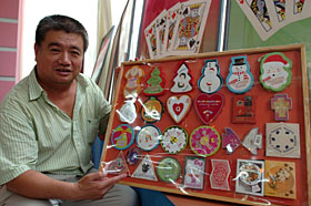 趙玉學(xué)在展示他收藏的異形撲克牌。本報(bào)記者 燕雁 攝 | 本報(bào)訊