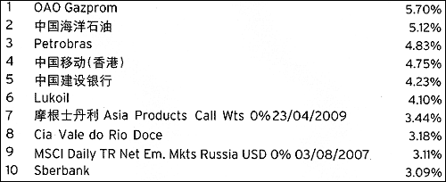 投資目標(biāo):主要投資于巴西、俄羅斯、印度和中國(guó)公司的股票證券。 資產(chǎn)分布:30%以上在中國(guó),近30%在巴西,20%~30%在俄羅斯,10%左右在印度。 管理年費(fèi):1.5%。 風(fēng)險(xiǎn)評(píng)測(cè):風(fēng)險(xiǎn)系數(shù)較高!敖鸫u四國(guó)”的股票市場(chǎng)在整個(gè)新興市場(chǎng)甚至是全球市場(chǎng)上扮演著越來(lái)越重要的角色,增長(zhǎng)和上升潛力相對(duì)成熟市場(chǎng)更出色。“金磚四國(guó)”的股票市場(chǎng)之間的相關(guān)性較低,因此比投資于單一國(guó)家的股市更能有效分散風(fēng)險(xiǎn)。