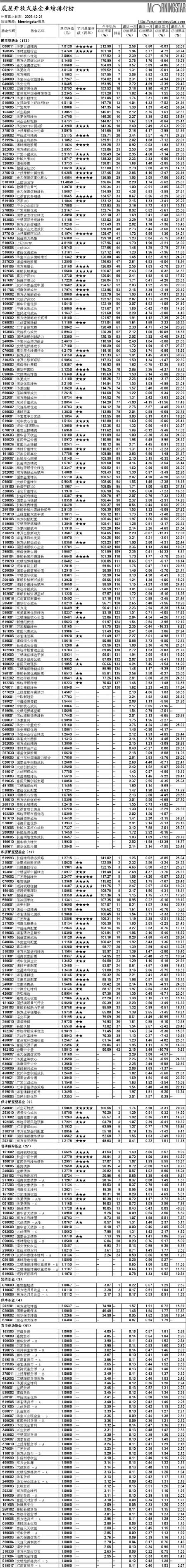 晨星開放式基金業(yè)績排行榜[2007-12-21]