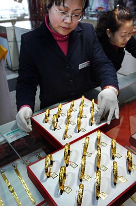 進(jìn)入2008年,黃金價(jià)格出現(xiàn)巨大升幅。1月14日,國(guó)際現(xiàn)貨黃金價(jià)格在創(chuàng)了915美元/盎司的歷史新高后沖高回落,但近期因美聯(lián)儲(chǔ)的減息行動(dòng),金價(jià)繼續(xù)在890美元上方高位盤整,國(guó)內(nèi)現(xiàn)貨金價(jià)也隨之上漲,日前突破200元/克關(guān)口。市場(chǎng)人士預(yù)測(cè),在美元貶值、油價(jià)高漲、流動(dòng)性過剩以及地緣政治局勢(shì)等諸多因素的推動(dòng)下,今年金價(jià)有望突破每盎司1000美元甚至達(dá)到1200美元。 在這樣一個(gè)“黃金時(shí)代”,如何把握黃金投資機(jī)會(huì),記者采訪了一些專業(yè)黃金投資機(jī)構(gòu),他們認(rèn)為投資黃金應(yīng)該是一種明智的選擇。
