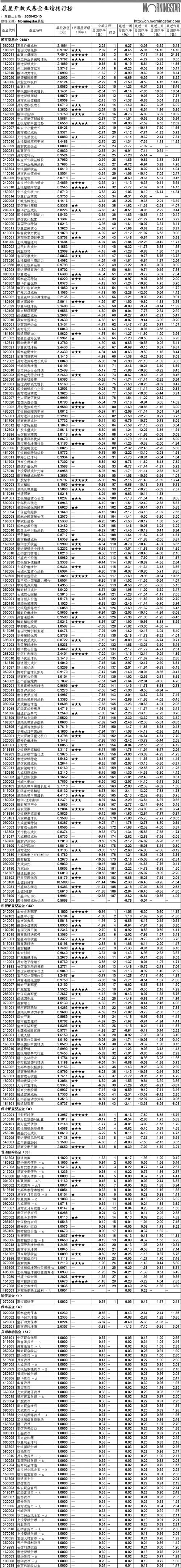 晨星開放式基金業(yè)績排行榜[2008-2-15]