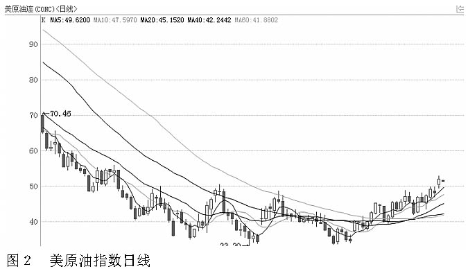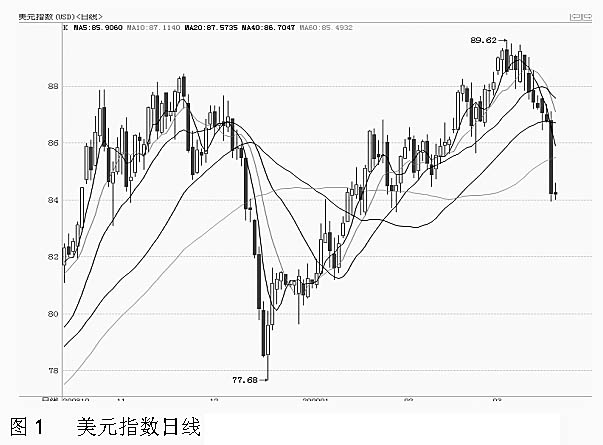 3月19日,受美聯(lián)儲(chǔ)(FED)表示將再度大幅注資美國(guó)經(jīng)濟(jì)體系、巨額購買超過3000億美元較長(zhǎng)期債券影響,當(dāng)日,美元遭遇集中拋售,USD指數(shù)收盤跌破85點(diǎn)的下行支撐位,單日暴跌2.9%(如圖1美元指數(shù)日線),引發(fā)美盤原油(見圖2)、大豆等商品市場(chǎng)歐美交易時(shí)間止跌強(qiáng)勁反彈。