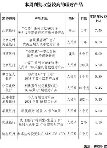 據(jù)普益財富不完全統(tǒng)計,本周(2009年5月8日至5月14日)78款銀行理財產(chǎn)品到期,其中96.15%的理財產(chǎn)品實現(xiàn)了預(yù)期收益,與上周到期理財產(chǎn)品全部實現(xiàn)預(yù)期收益相比,本周共有3款理財產(chǎn)品到期未實現(xiàn)預(yù)期收益,但總體來說,理財產(chǎn)品的收益實現(xiàn)情況良好。 本周到期理財產(chǎn)品的關(guān)注點之一是信貸資產(chǎn)類理財產(chǎn)品,本周到期的信貸資產(chǎn)類理財產(chǎn)品全部實現(xiàn)預(yù)期收益且未出現(xiàn)提前終止現(xiàn)象,連續(xù)兩周到期的信貸資產(chǎn)類理財產(chǎn)品都顯示出良好的收益實現(xiàn)能力。 本周到期理財產(chǎn)品的另一關(guān)注點是結(jié)構(gòu)性理財產(chǎn)品,本周到期未實現(xiàn)預(yù)期收益的3款理財產(chǎn)品都是結(jié)構(gòu)性理財產(chǎn)品,其中2款掛鉤股票的結(jié)構(gòu)性理財產(chǎn)品到期收益為負(fù),而1款掛鉤指數(shù)的結(jié)構(gòu)性理財產(chǎn)品到期也僅僅保住了本金,實際到期收益率為0,結(jié)構(gòu)性理財產(chǎn)品面臨的市場風(fēng)險仍然相當(dāng)突出。 到期收益水平較高的理財產(chǎn)品中,人民幣理財產(chǎn)品占有絕對的優(yōu)勢。與前幾周相比,外幣理財產(chǎn)品的到期收益出現(xiàn)不同程度的下調(diào),這主要是由于外幣理財產(chǎn)品所募集資金主要投資于債券和貨幣市場,與各國利率密切相關(guān),隨著各國貨幣利率的下調(diào),下調(diào)之后發(fā)行的理財產(chǎn)品收益也隨之下降。 由于本周花旗銀行未公布其QDII理財產(chǎn)品最新信息,故其86款產(chǎn)品此次不納入統(tǒng)計。截至2009年5月14日,正在運行的252款QDII理財產(chǎn)品中,9款理財產(chǎn)品實現(xiàn)了正收益,上周表現(xiàn)較好的渣打銀行“瑞銀‘投資大師’(QDSN08016P)”理財產(chǎn)品本周微幅下挫,凈值跌至1以下。中國農(nóng)業(yè)銀行、渣打銀行繼續(xù)占據(jù)所有正收益理財產(chǎn)品席位。農(nóng)業(yè)銀行“境外寶I股指掛鉤型”理財產(chǎn)品表現(xiàn)穩(wěn)定,以31.78%的累計收益率排名首位。 從本周市場觀察來看,投資者信心再次顯示出動搖跡象。在消息面相對平淡的情況下,投資者反而開始擔(dān)憂經(jīng)濟狀況,紛紛拋售股票,特別是經(jīng)濟敏感的小型股。本周截至周四下午六點,道瓊斯工業(yè)指數(shù)、納斯達克指數(shù)、標(biāo)準(zhǔn)普爾500指數(shù)、歐洲指數(shù)周跌幅分別為3.32%、2.89%、4.23%、2.90%。盡管美國方面公布的消息顯示上周原油庫存出現(xiàn)9周以來的首次減少,但原油期貨價格本周依然下跌,繼續(xù)高度關(guān)聯(lián)于股票市場走勢。受美元疲軟與股市下跌提振,本周黃金期貨價格繼續(xù)走強,截至周四下午六點,COMEX