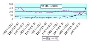 圖3是原油和美元的相關(guān)系數(shù)圖,數(shù)據(jù)記錄是從1983年4月到2008年12月。