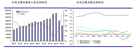 華泰證券的報(bào)告認(rèn)為,化工業(yè)務(wù)的扭虧為盈業(yè)務(wù)公司業(yè)績(jī)實(shí)現(xiàn)增長(zhǎng)的原因之一。合成樹(shù)脂、合成橡膠等主要石化產(chǎn)品在2008年底達(dá)到價(jià)格低谷后在2009年一季度都有逐步回升的趨勢(shì)。盡管尚未恢復(fù)到正常年度的盈利水平,但化工業(yè)務(wù)毛利狀況的逐步回歸正常,將使公司業(yè)績(jī)更加趨向于穩(wěn)定。