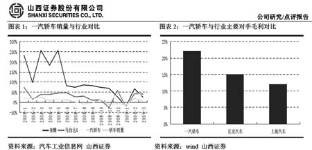 根據(jù)汽車工業(yè)協(xié)會(huì)資料,2009年1-4月,馬自達(dá)6實(shí)現(xiàn)銷量2.7萬輛,同比增長(zhǎng)15%;奔騰B70實(shí)現(xiàn)銷量1.7萬輛,同比增長(zhǎng)18%。遠(yuǎn)高于2.0升<排量2.5升乘用車市場(chǎng)1-4月銷量同比衰退9%的增速,顯示出較強(qiáng)的市場(chǎng)競(jìng)爭(zhēng)力。隨著新馬6和奔騰B50的上市,機(jī)構(gòu)普遍預(yù)計(jì),新車型將繼續(xù)推動(dòng)一汽轎車的業(yè)績(jī)?cè)鲩L(zhǎng)。