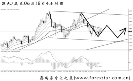 ▲澳元兌美元高位調(diào)整,目前支撐匯價的第一條趨勢線已被跌破,但還有第二條提供支持。預計漲勢不會很快結束,后市繼續(xù)以看多澳元為主,重點關注0.7780一線的支撐力度。