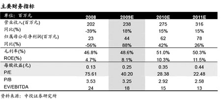 在現(xiàn)有業(yè)務(wù)基礎(chǔ)上,中投證券預(yù)測(cè),桂林旅游2009-2011年的EPS分別為0.25、0.35、0.44元;若2009年三季度末再融資工作順利完成,2009-2011年EPS分別顯著增厚至0.31、0.54、0.66元,其中福隆園項(xiàng)目2009-2011年分別貢獻(xiàn)了0.14元。