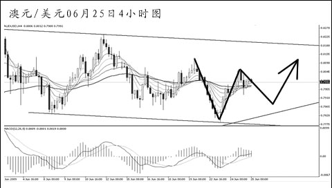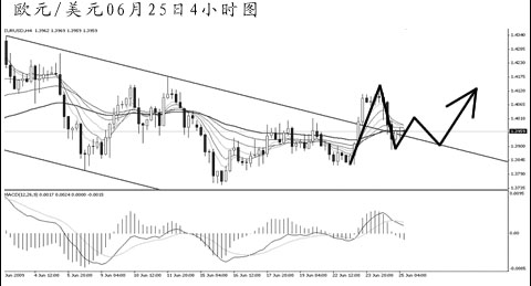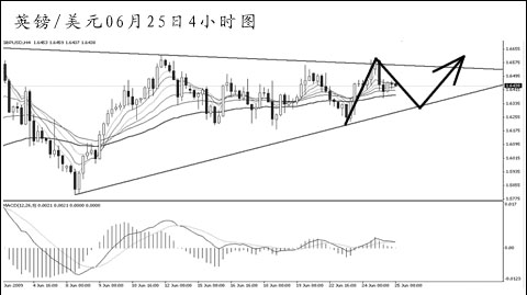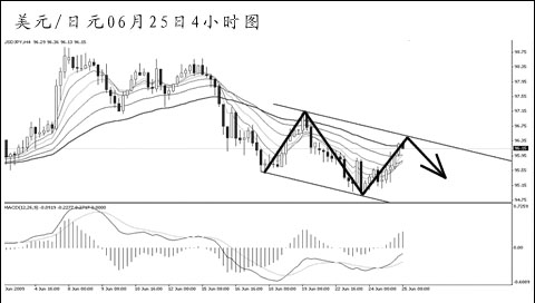 ▲美元兌日元短線小幅創(chuàng)出新低之后反彈,圖中的下降通道為經(jīng)驗(yàn)性畫法,上沿的阻力在96.50一線。預(yù)計(jì)美日仍將保持震蕩下落的節(jié)奏,只有有效升破97.20才能回歸階段性漲勢(shì)。