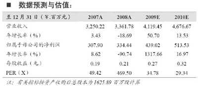 東海證券同時稱,由于在公司停牌期間大盤指數(shù)上漲接近8%,加上市場對水電上網(wǎng)電價上調(diào)的預(yù)期,不排除復(fù)牌后出現(xiàn)短線交易性機會。長期來看,我們看好水電行業(yè)和公司作為水電第一梯隊的發(fā)展?jié)摿,維持增持評級。 對于公司業(yè)績和估值,上海證券預(yù)期,此次資產(chǎn)收購評估基準(zhǔn)日為2009年3月31日,其間產(chǎn)生的損益由公司承擔(dān)。我們預(yù)計2009年、2010年公司可實現(xiàn)營業(yè)收入41.19億元、46.77億元,同比增長50.70%、13.53%;實現(xiàn)歸屬于公司股東的凈利潤2.31億元、2.58億元,同比增長1317.66%、16.97%。每股收益分別為0.27元、0.32元,動態(tài)市盈率為34.78倍、29.34倍;市凈率為2.79倍。相對估值看,公司估值略高。上海證券下調(diào)公司評級為:6個月內(nèi),大市同步。