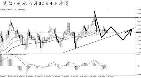 ▲美元兌瑞郎最近一個月的盤整在日線圖剛好形成了一個旗形下跌中繼雛形,后市匯價再創(chuàng)新低的希望很大。關(guān)注下方1.0650到1.0590一線的支撐作用,雖然短線的動能仍在交替,但仍將以下行為主基調(diào)。