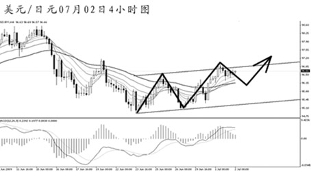 ▲美元兌日元將此前形成的下降通道上沿升破,短線的多頭動能再度展現(xiàn),匯價仍在延續(xù)大級別圖形的震蕩節(jié)奏。需重點(diǎn)關(guān)注97.20一線的6月中高點(diǎn)阻力,此位置將成為后市漲跌的分水嶺。預(yù)計匯價調(diào)整過后繼續(xù)上攻的概率較大。