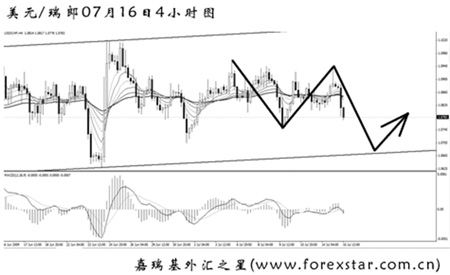 ▲美元兌瑞郎仍未能突破震蕩區(qū)間,后市匯價(jià)再創(chuàng)新低的希望很大。關(guān)注下方1.0675一線的支撐作用,雖然短線的動(dòng)能仍在交替,但仍將以下行為主基調(diào)。