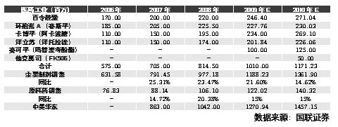 “西安博華和九州兩個子公司的經(jīng)營情況也將好轉(zhuǎn),如西安博華將增加原料藥和制劑品種,并正在做原料藥和中間體的出口準(zhǔn)備工作。另外,產(chǎn)品可待寧波子公司代理銷售,充分發(fā)揮公司內(nèi)部子公司間的協(xié)同效應(yīng),有利于西安二子公司彌補(bǔ)其銷售能力有限的不足,促進(jìn)產(chǎn)品銷售的增長!敝行抛C券分析師姚杰認(rèn)為。