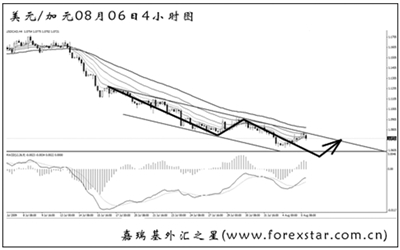 ▲美元兌瑞郎雖然此前出現(xiàn)了對(duì)旗型下沿的假突破,但匯價(jià)并沒有發(fā)力上漲,再度按照原有節(jié)奏向下運(yùn)行。下方支撐在1.0370一線。匯價(jià)有回抽旗型下沿的風(fēng)險(xiǎn),但只要不有效升破1.0735,后市仍將保持下跌的節(jié)奏。