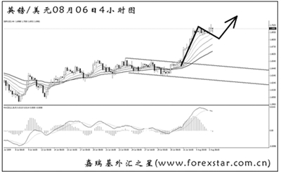 ▲英鎊兌美元匯價(jià)再度大幅沖高,已將6月底向上假突破的高點(diǎn)阻力1.6745成功升破。但由于4小時(shí)圖創(chuàng)出新高,尚沒有形成次要節(jié)奏調(diào)整。英鎊的上漲空間已基本被打開,下一步將逐步向1.7600上方挺進(jìn)。