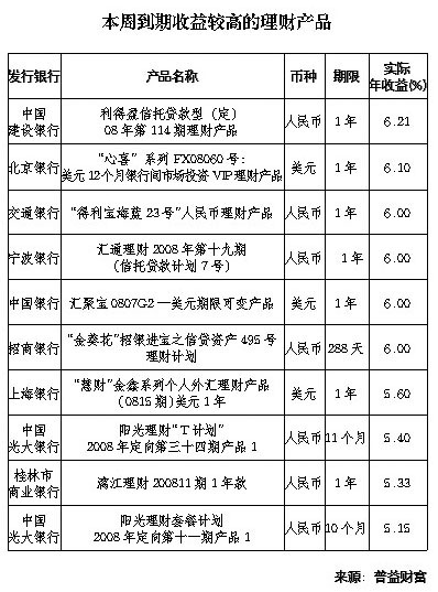 本周到期收益較高的理財(cái)產(chǎn)品[圖表]