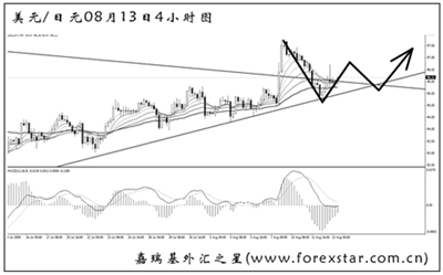 ▲英鎊兌美元短線下跌力度強勁,回調(diào)后有望再度回探一次趨勢線,但直接跌破的概率不大,預計后市將以逐步反彈的走勢為主。