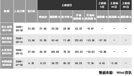 雖然新股發(fā)行接連不斷,但投資者今時(shí)在炒新的時(shí)候卻多了一份謹(jǐn)慎,因?yàn)榛仡^看今年已上市的新股,帶給“炒新一族”的大多是被套紀(jì)錄。例如,桂林三金、萬馬電纜、家潤(rùn)多、久其軟件、神開股份5只新股發(fā)行市盈率高達(dá)30多倍,上市首日收盤漲幅卻只有1倍左右,而且這些新股在上市首日即創(chuàng)出“頭部”,隨后一路走低。