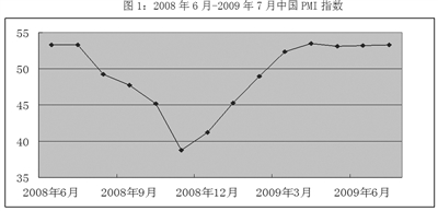 圖1:2008年6月-2009年7月中國(guó)PMI指數(shù)