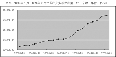 圖2:2008年1月-2009年7月中國(guó)廣義貨幣供應(yīng)量(M2)余額(單位:億元)