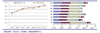 在蘭花科創(chuàng)長(zhǎng)期的產(chǎn)業(yè)布局中,除了無(wú)煙煤、化肥和煤炭行業(yè)的業(yè)績(jī)?cè)鲩L(zhǎng)也值得期待,資源整合所帶來(lái)的產(chǎn)能增長(zhǎng)同樣被看好。玉溪煤礦2008年10月31日獲得國(guó)家發(fā)改委核準(zhǔn),11月開工建設(shè),預(yù)計(jì)項(xiàng)目建設(shè)期為3年,該礦設(shè)計(jì)能力240萬(wàn)噸/年,是公司煤炭產(chǎn)能的增長(zhǎng)點(diǎn)。公司自2008年8月份先后整合了山陰口前煤業(yè)、中立煤業(yè)、瑞興煤業(yè)等煤礦,其中山陰礦未來(lái)有建設(shè)成300萬(wàn)噸礦井的可能。參股的山西亞美大寧能源有限公司本已經(jīng)達(dá)產(chǎn)達(dá)效。