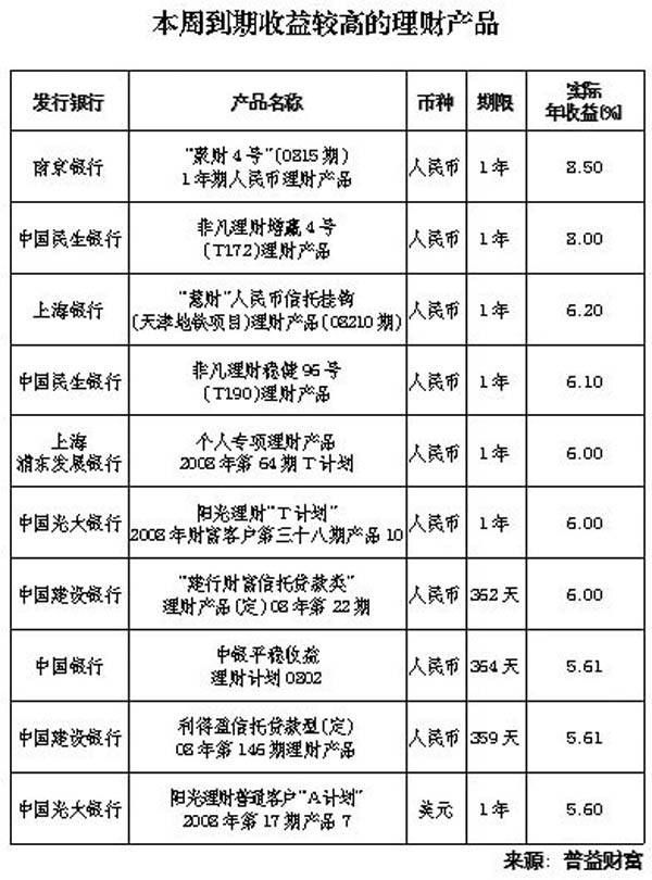 本周到期收益較高的理財產(chǎn)品[09-24]