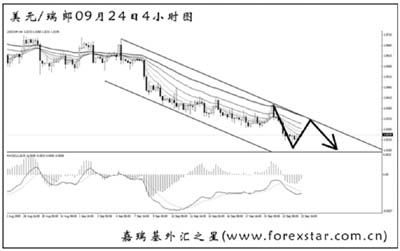 ▲美元兌瑞郎震蕩走低,短線收出一根錘子線,但整體看跌的思路仍暫時(shí)不變。上方的兩道阻力分別在1.0320和道氏理論顯著高點(diǎn)1.0390,預(yù)計(jì)直接沖破通道的概率不大。
