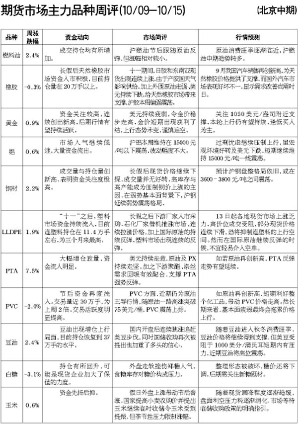 期貨市場主力品種周評[10.09—10.15]