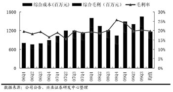 公司各季度成本、毛利(百萬(wàn)元)及毛利率(%) |