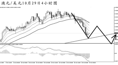 澳元兌美元匯價(jià)在觸及0.9300一線后的下行速度強(qiáng)勁,4小時(shí)圖顯示空頭動(dòng)能充盈。澳元即將考驗(yàn)大級(jí)別上升趨勢(shì)線0.8920的支撐,但只有站到0.8570下方方可結(jié)束其中線的漲勢(shì)。 |
