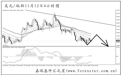 ▲美元兌瑞郎沿4小時圖的下降通道節(jié)節(jié)走低,尚未能跌破前方1.0030的強(qiáng)支撐。從小時圖上看,短線匯價的下跌動能持續(xù)減弱,但包含MACD底背離點(diǎn)的趨勢線仍然壓制匯價。預(yù)計美瑞下周展開一輪上行回調(diào)的概率較大,不過直接挑戰(zhàn)通道上沿并不可期。